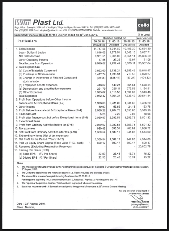 Quarterly Result