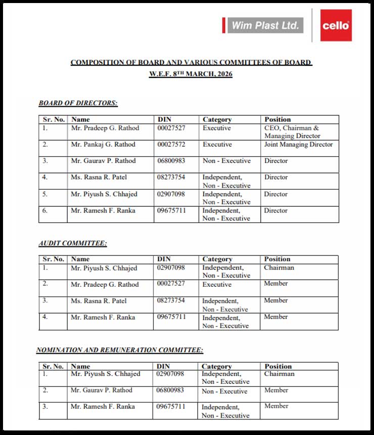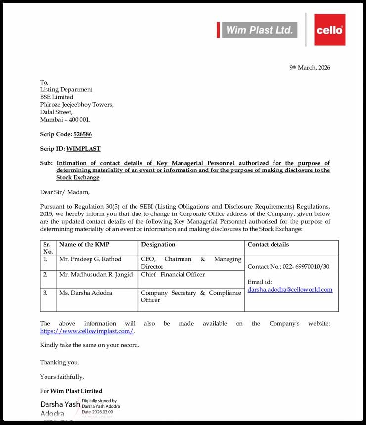 Customer Care : +91 74 0000 7370 | Sales Enquiry : +91 74 0000 7374 | wimplast@celloworld.com